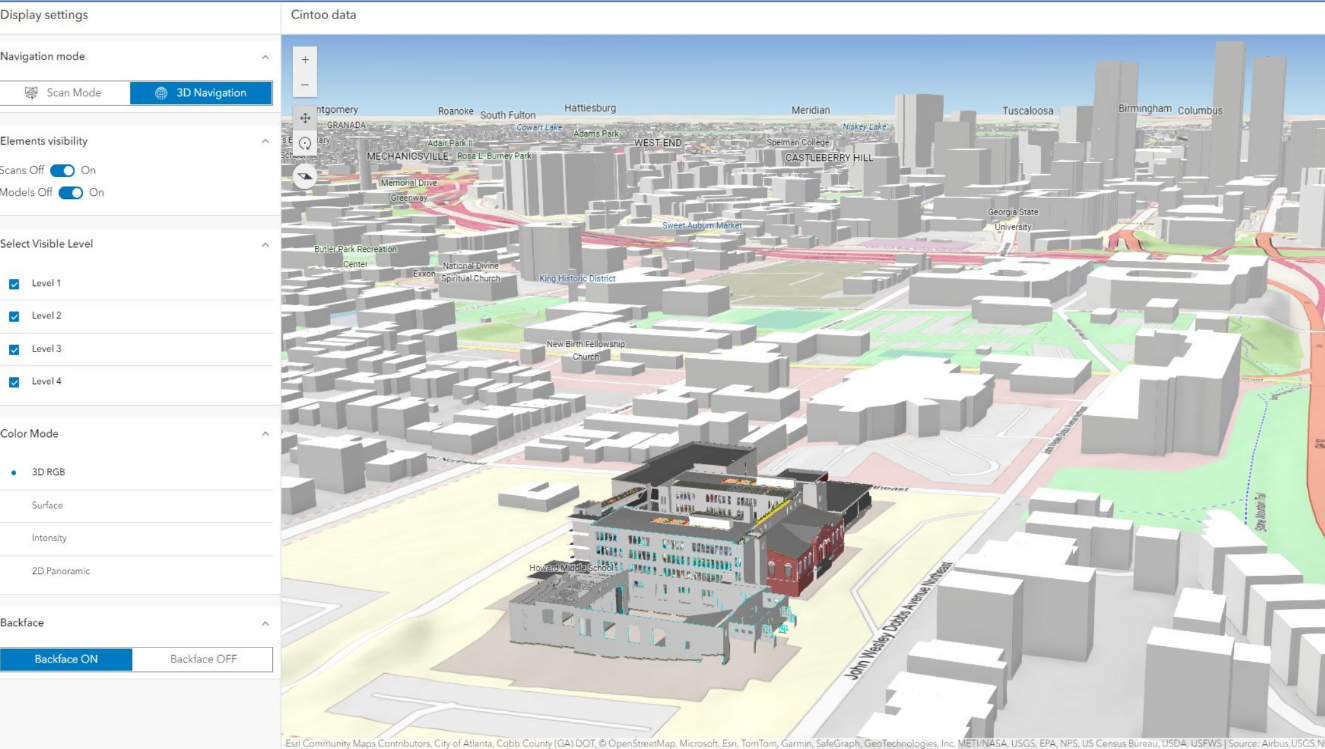 Using the widget, engineers can navigate scan data from field captures, switch between RGB and intensity modes for precise inspection, and compare current site conditions to BIM or CAD models using the built‑in comparison tool, all within ArcGIS. This helps Buckeye identify discrepancies, plan retrofits, and assess safety risks in aging infrastructure, right within their Esri-hosted project,